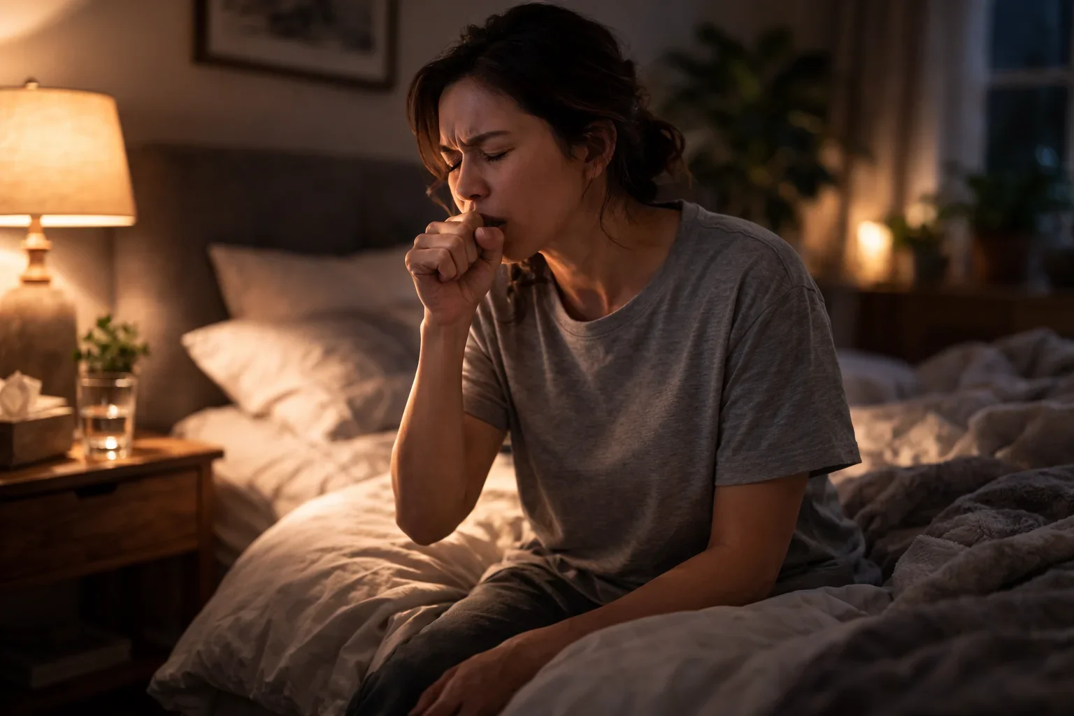 Research has shown that healthy people rarely cough at night — the cough reflex is significantly suppressed during deep sleep. So if a cough is waking you up or preventing sleep from starting, it suggests a strong or persistent stimulus is active.
