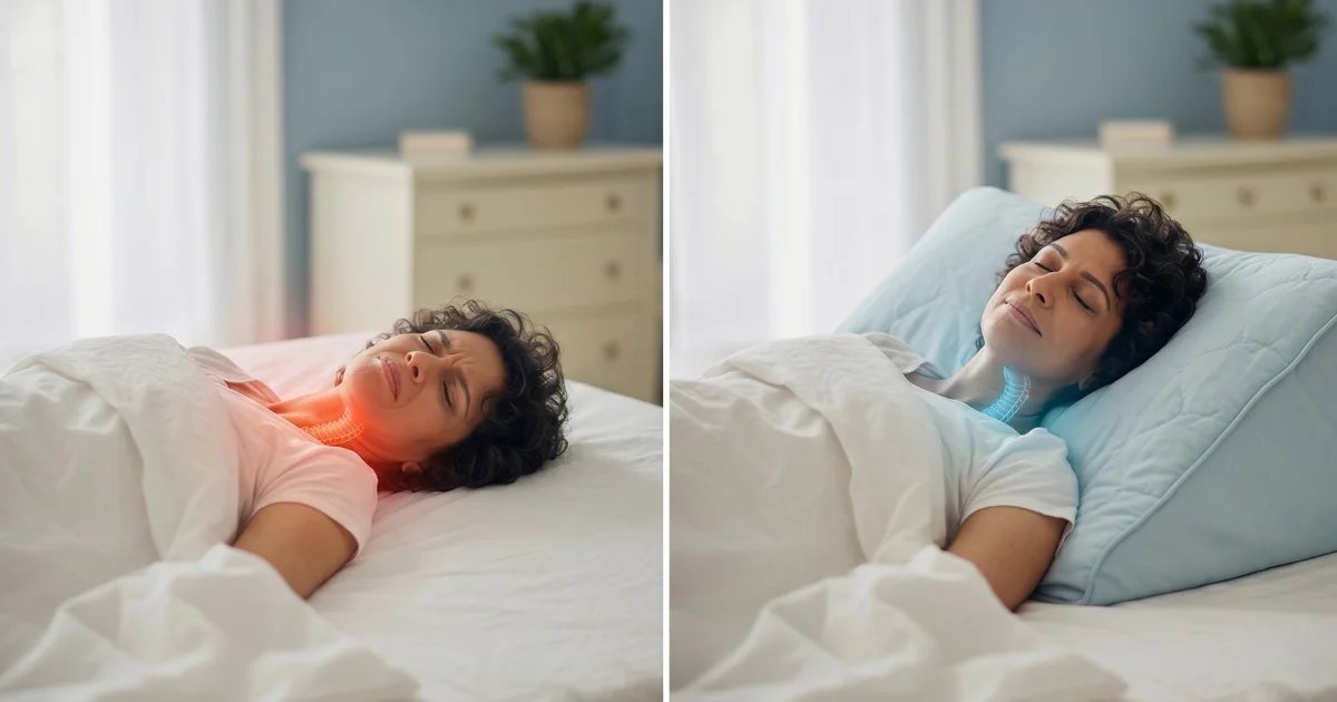 Sleeping on your side or with your head slightly elevated may help. It does not fix the underlying inflammation, but it can reduce how much posture adds to the problem.